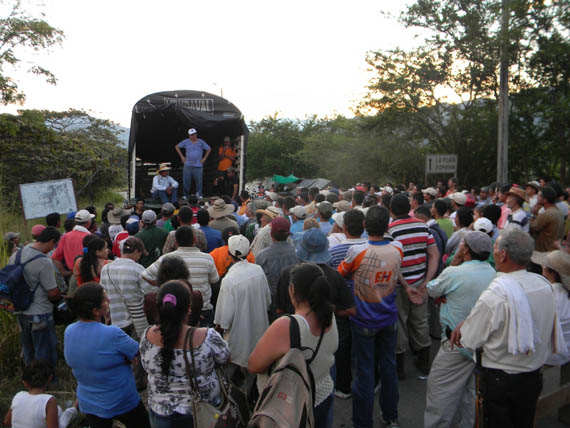In the Upper Magdalena River Valley (originally the Guacahayo River), the peoples of the central part of what is now the Department of Huila, inspired by the global Occupy movement, initiated a regional strike on January 3rd that lasted for two weeks. The strike was called by the Association of Communities Affected by the Quimbo Hydroelectric Project (ASOQUIMBO), the Civic Committee of La Plata, the Regional Indigenous Council of Huila (CRIHU) and the communities near the Matambo Mountain and the Páramo of Miraflores peak being devastated by the Emerald Energy Petroleum Company. These communities united to form the Regional Movement for Defense of the Territory with a clear message: multi-national corporations out of our territory!